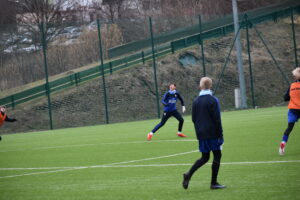 Paweł Popiela – trener drużyny B2 : Zazwyczaj to my jesteśmy drużyną która gra przeciwko zawodnikom o rok starszym , dzisiaj rolę się odwróciły i naprzeciwko nam stanęła drużyna Trenera Węgrzyna złożona z chłopaków urodzonych w 2007 roku . Wygraliśmy wysoko jednak gra momentami nie spełniała moich oczekiwań. W początkowej fazie spotkania popełnialiśmy błędy przy otwarciu gry, były to głównie błędy techniczne spowodowane słaba jakości podania lub złym przyjęciem piłki co grający wysokim pressingiem zespół wykorzystywał notując sporo odbiorów . Po jednej z takich akcji straciliśmy bramkę. W dalszym etapie meczu potrafiliśmy skutecznie kontrpresowac zespół trenera Węgrzyna mijając ich pierwsza i druga linie dzięki czemu stwarzaliśmy sytuację bramkowe. Muszę przyznać że drużyna z rocznika 2007 również rozegrała dobre zawody i gdyby była bardziej skuteczna wynik mógłby być inny.