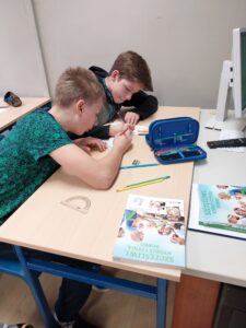 Natomiast w klasie 7a Szkoły Podstawowej, uczniowie zostali podzieleni na dwuosobowe grupy. Ich zadaniem było przedstawienie graficzne papieża Jana Pawła II i dyscypliny sportu, które uprawiał w czasie swojego pontyfikatu. Uczniowie w swojej pracy mogli korzystać z zasobów internetowych oraz zastosować dowolną formę plastyczną. Po wykonaniu zadania każda z grup miała omówić swoją pracę. Zastosowana metoda odwróconej klasy pozwoliła uczniom doświadczyć pracy zespołowej, umiejętności współpracy, wyszukiwania istotnych informacji oraz bliższego poznania św. Jana Pawła II.