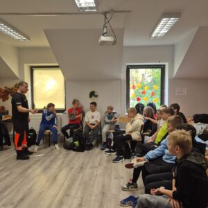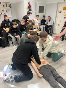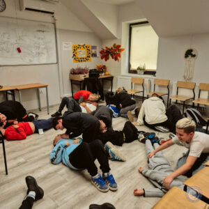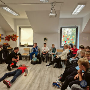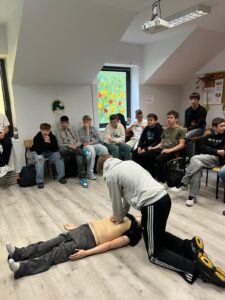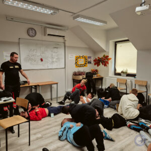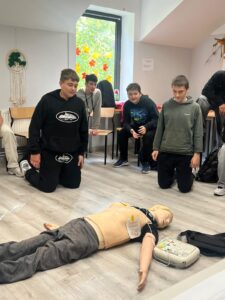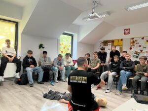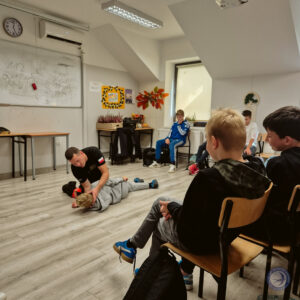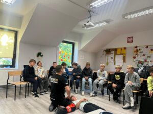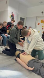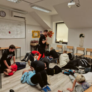 Pod okiem doświadczonego ratownika medycznego z firmy Passio Poland uczniowie przećwiczyli m.in. RKO na fantomach z użyciem AED, ułożenie w pozycji bocznej bezpiecznej, tamowanie krwotoków i skuteczne wezwanie pomocy (112), rozwijając przy tym kluczowe kompetencje: szybką ocenę sytuacji (ABC), współpracę w zespole, jasną komunikację i działanie pod presją. Zajęcia były bardzo ciekawe, dynamiczne i nastawione na działanie, dzięki czemu każdy uczeń mógł sprawdzić umiejętności nabyte podczas szkolenia. Młode Jaskółki już wiedzą, jak się zachować, gdy ktoś potrzebuje pomocy.