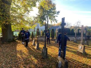 Licealiści realizowali projekt związany z 104.rocznicą odzyskania niepodległości. Podobnie jak ósmoklasiści, którzy na cmentarzu byli parę dni wcześniej, uczniowie 1a z oddaniem przystąpili do pracy: wyczyścili groby, wygrabili liście, zapalili świece i znicze.