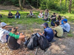 Po intensywnym wysiłku przyszedł czas na zasłużony odpoczynek. Uczniowie z opiekunami wrócili do schroniska. Na placu czekało ognisko. Można było upiec sobie kiełbaskę, napić się herbaty i spędzić wspólnie trochę czasu na rozmowach.