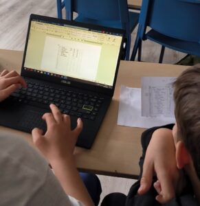 Pierwsza grupa „telefonowa” miała za zadanie odszukać tabelę ligową 2021/2022 podanego kraju (każdy uczeń – inny kraj), a następnie wypisać 16 pierwszych drużyn, ich liczbę punktów z całego sezonu, bramki zdobyte i stracone. W tym czasie grupa „komputerowa” musiała w MS Word utworzyć tabelę o dokładnych wymiarach i konkretnym wyglądzie. Musiała się zgadzać ilość kolumn i wierszy. Obie grupy działały niezależnie. Początkowo nie znając celu swojego działania. Na wykonanie pierwszej części zadania było 10 minut.