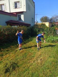 Klasa 6a udała się do Pani Marii, w celu uporządkowania posesji. Chłopcy bardzo się zaangażowali. Szybko poradzili sobie z koszeniem trawnika i sprzątaniem podwórka. Wykonali ogrom pracy. Efekty widać gołym okiem.