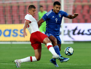 Starcie we Włoskim Catanzaro, rozgrywane przy udziale 8000 widowni,  nie wypadło najgorzej dla młodych Biało-Czerwonych, którzy potrafili stoczyć wyrównaną i dość emocjonującą walkę z aktualnymi mistrzami Europy i wicemistrzami świata.  Jedynego gola w tym spotkaniu strzelili  rywale w 41. minucie gry, gdy po dośrodkowaniu z rzutu rożnego piękną główką z kilkunastu metrów popisał się Filippo Terracciano. Jak się okazało była to jedyna bramka zdobyta tego dnia, gdyż defensywy obu ekip rozgrywały tego dnia doskonałe zawody.