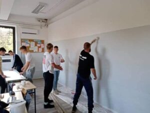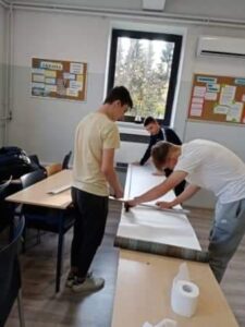 Uczniowie klasy 3a wytapetowali swoją salę lekcyjną. Pracowali pod czujnym okiem wychowawczyni Pani mgr Bogusławy Wareckiej- Łachut. Licealiści bardzo dobrze poradzili sobie z zadaniem, chociaż niektórzy robili to po raz pierwszy.