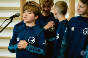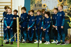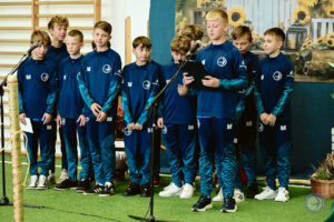 W październikowe przedpołudnie społeczność szkolna spotkała się podczas uroczystości pod hasłem roku „Rycerze nauki i sportu” i mottem „Razem ku słońcu — dziękujemy, ślubujemy”.