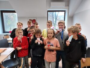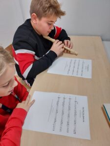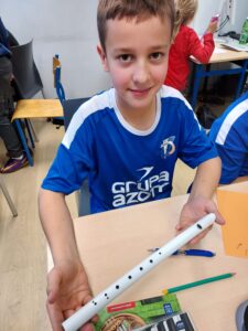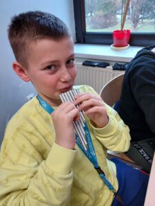 Podczas lekcji muzyki, uczniowie klasy 5a, projektowali i budowali instrumenty dęte. Pierwszym etapem projektu była wizyta w Państwowej Szkole Muzycznej w Tarnowie. Uczniowie mogli posłuchać koncertu z wykorzystaniem instrumentów dętych oraz zobaczyć je z bliska. Zapoznali się budową, brzmieniem i zasadami wydobycia dźwięku.