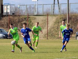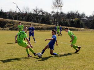 W sobotę na kameralnie położonym stadionie w Nowym Sączu – Biegonicach drużyna Unii Tarnów rozegrała spotkanie w ramach II Małopolskiej Ligi Juniorów Młodszych z drużyną Biegoniczanki. Już w 1 minucie meczu szarżę Bartka Szarka w bezpardonowy sposób zatrzymał obrońca gospodarzy jednak sędzia nie dopatrzył się faulu co wprawiło w osłupienie ławkę rezerwowych. Kolejne śmiałe ataki tarnowian nieco zastopowały zapędy miejscowych, którzy w twardym stylu starali się wybić z rytmu zespół Unii. Niezłe okazję na strzelenie bramki mieli Trancygier , Szczurek i Michalik ale ich akcje nie znalazły drogi do bramki. Trzeba przyznać , że agresywna gra i duża ilość fauli w pierwszej połowie była skuteczną taktyką dla gospodarzy i po 45 minutach obydwie drużyny schodziły do szatni z wynikiem 0:0. Po korektach w składzie podopieczni trenera Popieli wyszli na boisko z mocno ofensywnym ustawieniu czego efektem była bramka w 51 minucie wprowadzonego chwilę wcześniej na boisko Wiktora Wojtanowskiego. Po bramce na 0:1 miejscowi otworzyli się narażając się na liczne kontry a najlepszych z nich nie wykorzystali Trancygier i Gawron. Po czerwonej kartce dla Pawła Ogorzałego od 75 minuty jaskółki grały w osłabieniu.