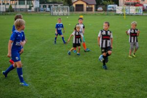 Okiem Trenera – Paweł Popiela: Myślę, że podczas całego spotkania obydwie drużyny strzeliły około 30-40 bramek rozgrywając przy okazji bardzo dużo minut co moim zdaniem było sporym wysiłkiem, ponieważ duża cześć zespołu F2 to chłopcy urodzeni w 2015 którzy zmienili kategorie wiekową w tym sezonie. Zagraliśmy na dwóch boiskach starając się z trenerem Metalu tak dobrać drużyny aby poziom umiejętności był wyrównany. Bardzo się cieszę, że kibicowała nam duża liczba rodziców. Podczas treningów opiekunowie nie mogą uczestniczyć w zajęciach ale na meczach mogą oczywiście obserwować swoje pociechy, dlatego w imieniu dzieciaków bardzo dziękuję za kulturalny doping i zbijanie „piątek”.