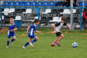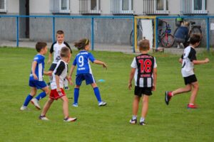 Na dwóch boiskach przez prawie 90 minut z wielką frajdą dzieciaki z obydwu klubów prezentowali swoje umiejętności pod okiem sporej liczby kibicujących rodziców.