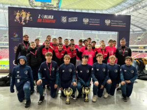 Na stadionie Znicza Pruszków drużyna U-14 zmierzyła się z SP7 Leszno (wielkopolskie) oraz SP1 Słubice (lubuskie). W pierwszym spotkaniu uległa przeciwnikom 3:1, natomiast kolejne wygrane na naszą korzyść 6:1. Ostatecznie chłopcy na PGE Narodowym zawalczą o 5/6 miejsce.