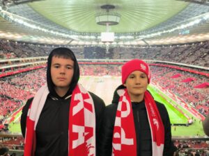 Po ciężkim dniu, wszyscy razem udali się na mecz Polska-Szkocja rozgrywany w poniedziałek o 20:45 na Stadionie Narodowym! ⚪️🔴