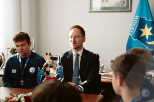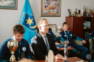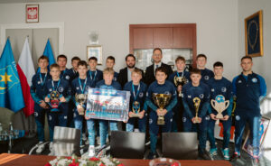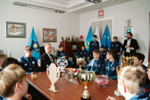 Po znakomitym występie i wygranej w turnieju makroregionalnym, która dała awans do Finału Ogólnopolskiego na Stadionie Narodowym w Warszawie, zawodnicy SMS ZKS Unia Tarnów wraz z Dyrektorem Szkoły Tomaszem Matyjewiczem oraz z trenerem Sebastianem Greniem udali się z wizytą do Prezydenta Miasta Jakuba Kwaśnego.