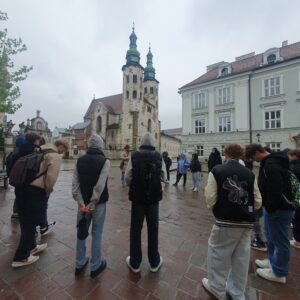 15 kwietnia 2024 roku klasa 1A LO wybrała się na wycieczkę przedmiotową z języka polskiego do Krakowa. Uczniowie podążali szlakiem średniowiecznych i renesansowych zabytków krakowskich, zgłębiając wiedzę z zakresu historii sztuki, literatury i historii.