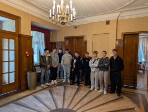 Budynek ten w okresie przed II wojną światową był siedzibą dyrektora Państwowej Fabryki Związków Azotowych w Tarnowie. Przez cztery lata mieszkał w niej wraz ze swoją rodziną Eugeniusz Kwiatkowski, dyrektor fabryki, a później Minister Skarbu i współtwórca Centralnego Okręgu Przemysłowego. W czasie naszej wizyty chłopcy wysłuchali krótkiego wykładu i obejrzeli film przybliżający postać Eugeniusza Kwiatkowskiego oraz historię tarnowskiej fabryki. Uczniowie mogli też zwiedzić sale na parterze budynku i ogród, który otacza budynek.
