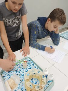 Uczniowie prowadzili i zapisywali obserwacje, wyciągali wnioski, które następnie prezentowali na forum klasy.